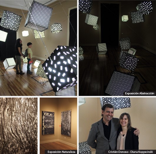 Por un lado “Naturaleza”, es una serie de 18 imágenes de maderas, tensadas en papel Fine Arts. Al lado opuesto esta la “Abstracción” geométrica combinado con la luz, una instalación escultórica - lumínica. "La placa Cleaneo de Knauf se utiliza generalmente para depurar adecuadamente el sonido ambiental en los interiores, con su estética originaría con perforaciones redondas y cuadradas, aleatorias y rectilíneas, da pie a un juego visual”, consta el artista. Estas perforaciones permiten admirar la luz interior de cada objeto, gozar la geometría de las formas que se produce en el espacio exterior de los cubos, como verdaderos navegantes de luz. La luz a su vez da cuenta de la necesidad de mantener la luz propia y original del ser humano, la que surge desde su nacimiento y se desarrolla durante su vida hasta la madurez.