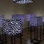 Cristián Donoso, artista visual y fotógrafo tenía la visión de incorporar la placa perforada acústica Knauf Cleaneo® en su proyecto “Guardianes de la luz”, una escultura lumínica que consiste en cubos perforados e intro-iluminados, presentado por primera vez con gran éxito en la exposición de arquitectura e interiorismo Casa Foa 2017. Los cubos fueron fabricados con placas Cleaneo® de diferentes modelos con la maquina PFT para la producción de cenefas.